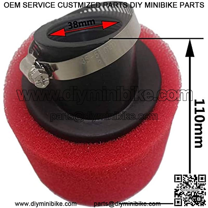 100% brand new and high-quality performance air filter, angled neck, universal fits for most motorcycle air filter with 1.45″, 1.5″, 1.53″ engine inlet.