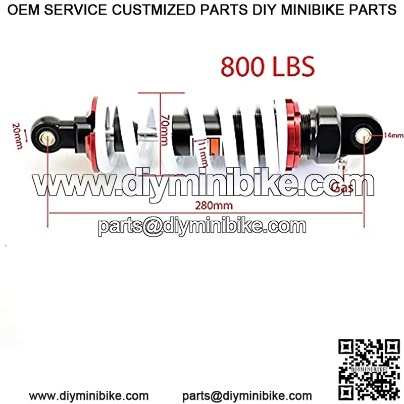 1 Piece Shock Absorber 280mm 11.02 inches Round Ends Motorcycle Replacement Universal for Scooter Atv Quad Dirt Sport Bike Go Kart SZK Ka.wa-saki YA.MA-HA DCT Titanium black and white