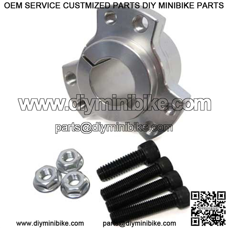 1″ bore, American pattern wheel hubs come complete with 1/4″ hardware and are drilled and tapped for both 1/4″ & 5/16″ bolts. These hubs are made of aluminum and have an approximate outer diameter of 3″. The larger bolt hole measures 9/32 (.28). Smaller bolt hole measures 13/64 (.20). Center to center of the bolt hole measures 21/32 (.65).