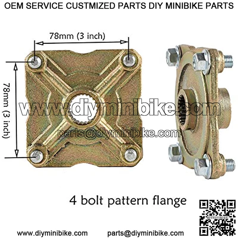 1. The axle made by high strength chrome, bend proof, can support more than 500lbs.2. The sprocket can be changed to other type, just make sure the dimension same as this 428 chain sprocket.3. The axle is symmetric, so the brake and sprocket can be moved to a different location.4. Perfect for vertical or horizontal engines with any displacement and electric motors.5. Fits 6″-10″ wheels with 3″ distance from bolt hole to an