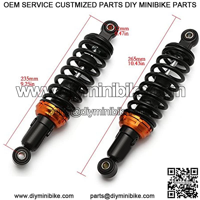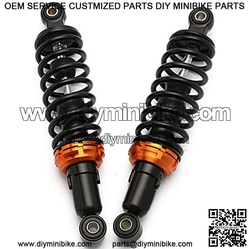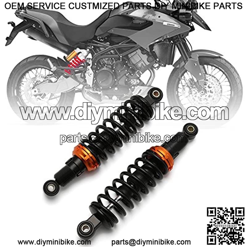 Fitment: 11″ 280mm Universal For Honda Kawasaki Suzuki Yamaha Aprilia Triumph Benelli KTM Scooter.Color: Black & Orange.Size: 310mm (12.2″) total length, 280mm (11″) eye to eye, Eye Diameter: 12mm, Eye thickness: 21mm, Spring thickness: 7mm, Spring Width(approx): 60mm (2.4″).Max loading: <200 kg /440 lbs, The eye of shock has tensile strength more than 2000kgf; The dumper and spring designed for long durability (more than 1 million).Our products are made by high-qualified materials with japaneses technology and the advanced computer numerical control processing. the quality is strictly monitored by ISO9000 standard to make sure the excellent performance and the good condition in the long-term use.It is good quality and replacement for some Go kart Quad and ATV.Color:Black/OrangeOur products are made by high-qualified materials with japaneses technology and the advanced computer numerical control processing. the quality is strictly monitored by ISO9000 standard to make sure the e