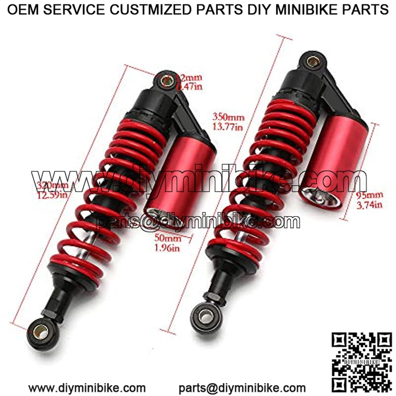 Fitment: 12.5″ 320mm Universal For Honda Kawasaki Suzuki Yamaha Aprilia Triumph Benelli KTM.Color: Red.Size: 350mm (13 3/4″) total length, 320mm (12 5/8″) eye to eye, Eye thickness: 21mm, Spring thickness: 7mm, Spring Width(approx): 60mm (2.4″).Max loading: <200 kg /440 lbs, The eye of shock has tensile strength more than 2000kgf; The dumper and spring designed for long durability (more than 1 million); Factory Air Pressure: 0.4 Mpa, Maximum Air Pressure: 0.5 Mpa.Our products are made by high-qualified materials with japaneses technology and the advanced computer numerical control processing. the quality is strictly monitored by ISO9000 standard to make sure the excellent performance and the good condition in the long-term use.It is good quality and replacement for some Go kart Quad and ATV.Color:RedOur products are made by high-qualified materials with japaneses technology and the advanced computer numerical control processing. the quality is strictly monitored by ISO9000 stand
