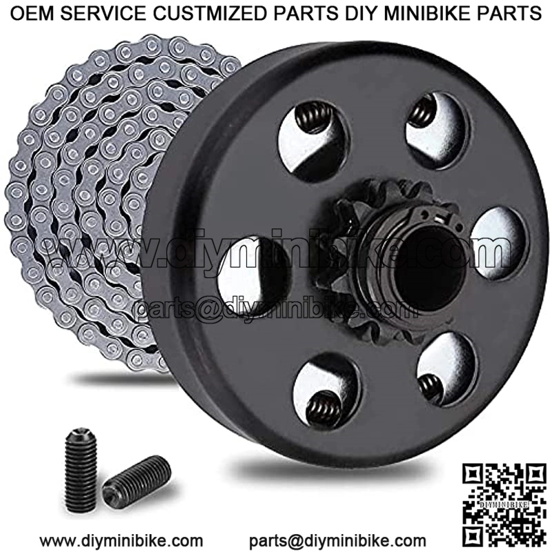 Centrifugal clutch Go Kart Clutch 3/4 inch bore 12 tooth #35 chain screw sets for go kart mini bike fun kart 2-7 HP engines 2300??300 PRM Compatibility For Fits GX160, GX200, GX 140, GX120, GC160, GC190, Harbor Freight Greyhound 196cc, Harbor Freight Predator 212cc, Briggs and Stratton Tecumseh engines and 2-6.5 HP with 3/4 inch shaft Multifunction Also fits any other engines with 3/4 crank shaft and 3/16 inch key way, most 5.5 HP clones, 6.5 HP clones and 4-7HP motors in all brands Recommended Engine 2HP – 7HP, 3/4 inch shaft with flat key Package included 1Centrifugal Clutch, 1 #35 Chain, 2Set Screws Part number: Clutch-003 Fit type: Universal