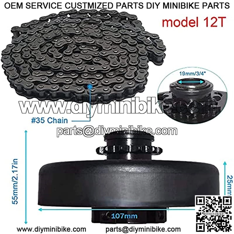 12T Centrifugal Clutch 3/4 Bore 12 Tooth with 35 Chain for Go Karts/Mini Bike/Lawnmower Fun Kart 2-7 HP Engine Replacement for GX160 GX200 GX140 GX120 GC160 GC19