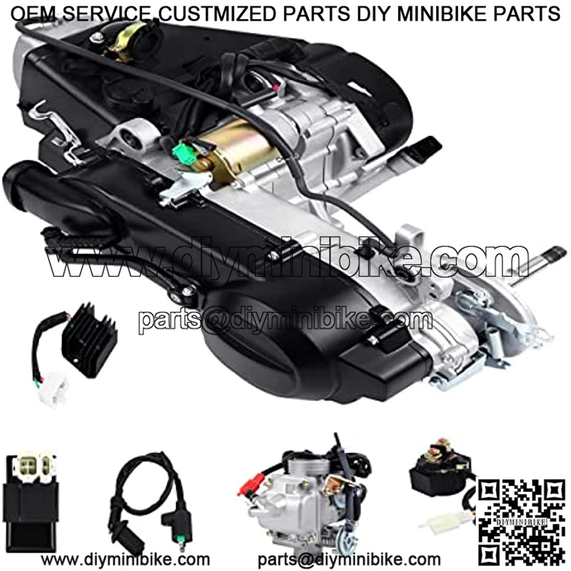 This complete engine set includes carburetor, CDI, starter solenoid, coil,kick start lever.