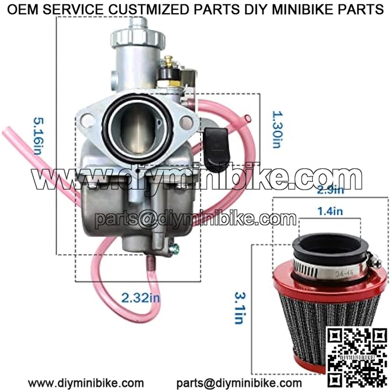VM22-3847 Carburetor Air Filter Kit fits for Predator 212cc 224cc Engine, honda GX200 And 196cc Clones. This Carburetor Is Mainly Intended For Use On Mini-bikes, It Can Be Used On Go-Karts With Modifications to the Throttle Cable.