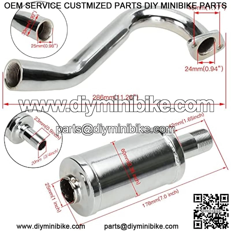 NotePlease check the size and pictures carefully to make sure it does not hit the fender or frame.You can also use the measuring tape to compare with the description dimensions for the correct adaptation.Install the exhaust pipe firmly at irst and then install the muffler.Please contact us by email if you have any questions.