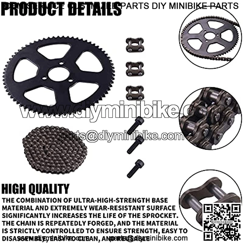 25H 136 Links Chain + 68 Tooth Rear Sprocket,Fits for 2-stroke 49cc Pocket Bike Mini Bike.