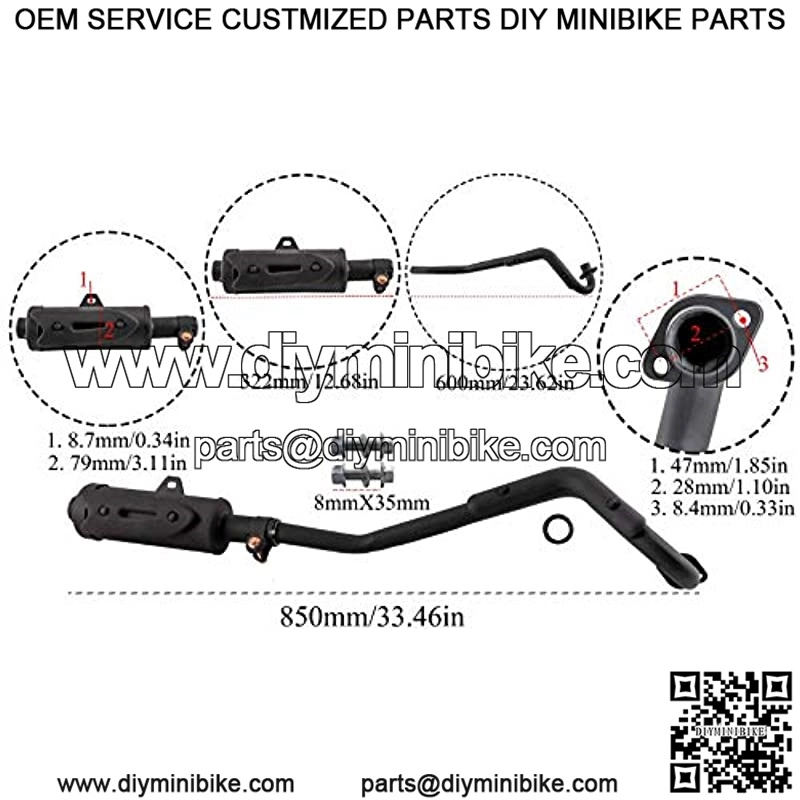 28mm 1 1/8″ Exhaust Pipe for ATV Quad Go Kart 50cc 70cc 90cc 110 125cc