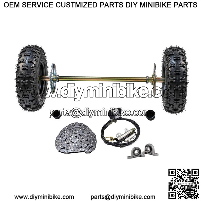Measurement:740mm long (29 inch) 22mm (7/8) in diameterFit many 50cc 70cc 90cc atv quads, such as Atomik , Motowork, DHZ , LEI etc.This is a complete rear axle kits for gokart.Perfect for DIY gokart projects or rebuilds.It will come like the photo shows.Measurement: Length:740mmChain Sprocket:T8F 58TOther sizes please check the photos.Thanks.Fit many 50cc 70cc 90cc atv quads, such as Atomik , Motowork, DHZ , LEI etc.Item: Pair of Rear knobby tires with 3 hole rimSize:4.10-6Package includes :Rear Axle Kit + Pair of Tires + 1x Brake assembly master cyclinder+ Pillow blocks