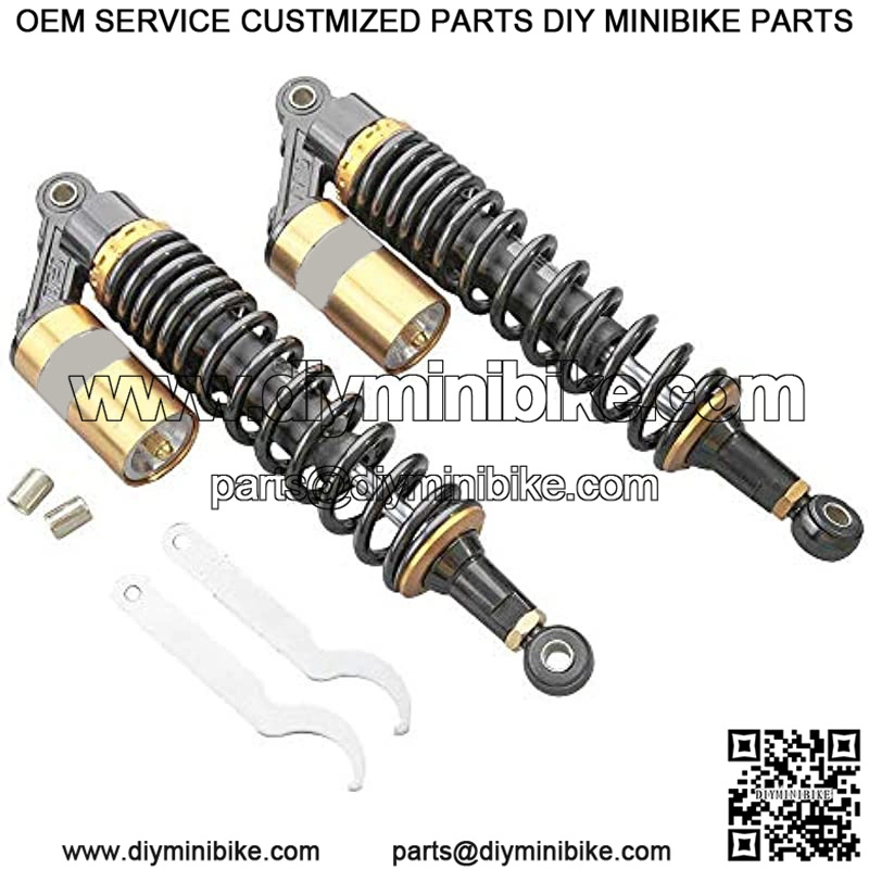 2PC 375mm Motorcycle Air Shock Absorbers Rear Suspension Universal Fits Most 150cc~750cc Street Bikes, Scooters and Moped Quad (ATV) Gold
