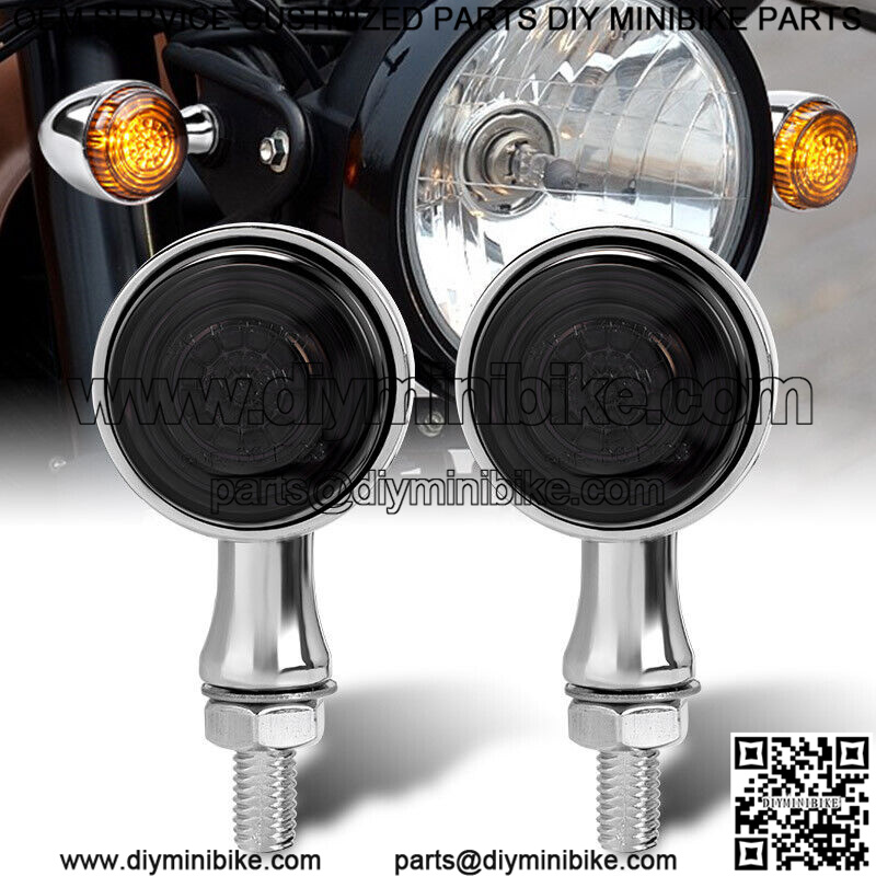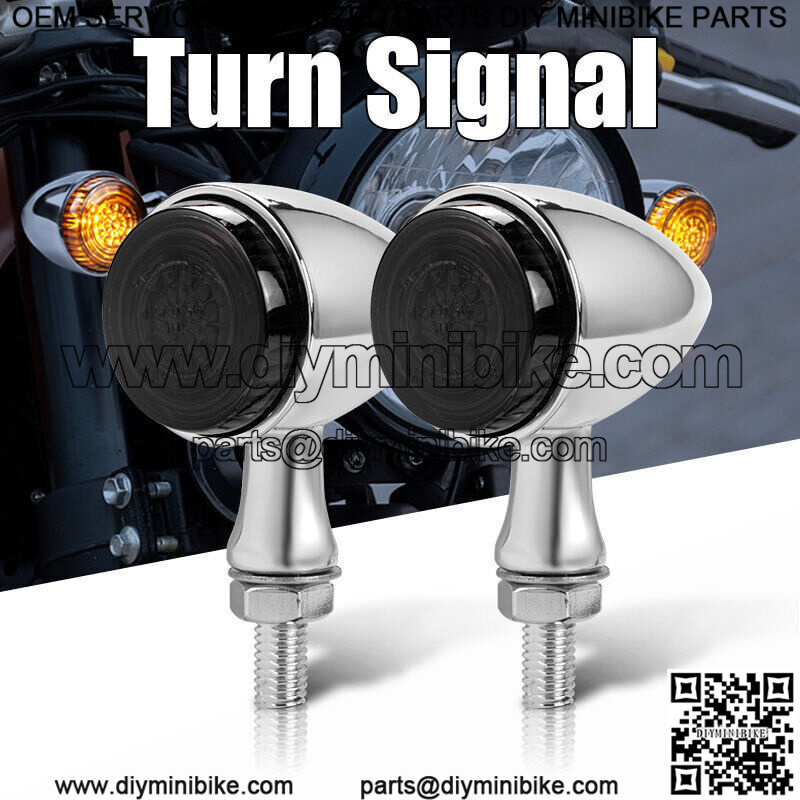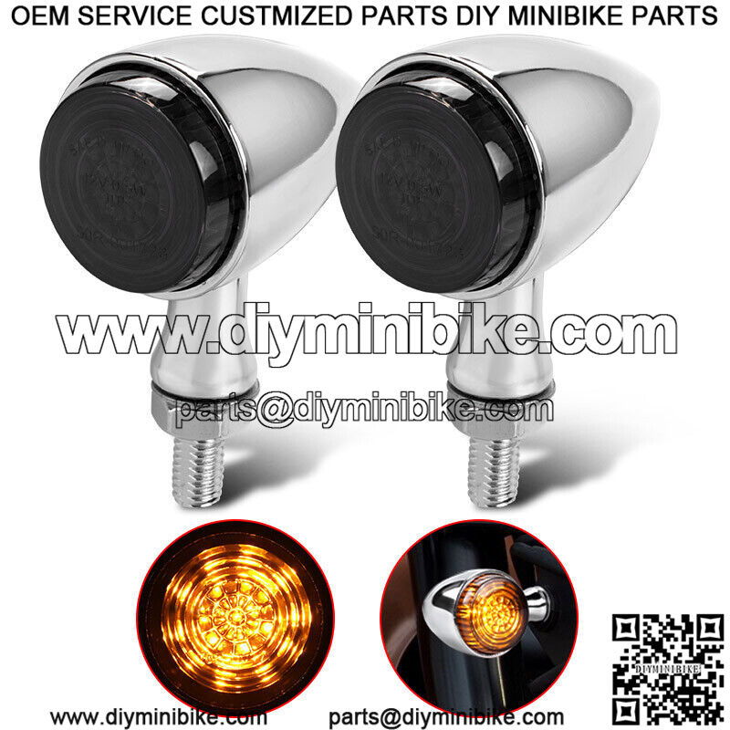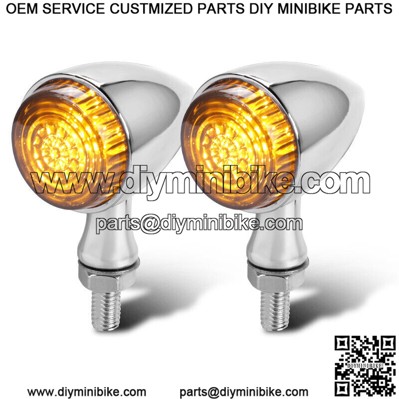 2x Chrome LED Motorcycle Bullet Turn Signal Blinker Light For Bobber Cafe Racer