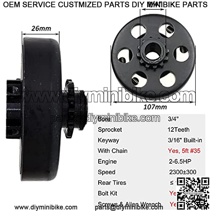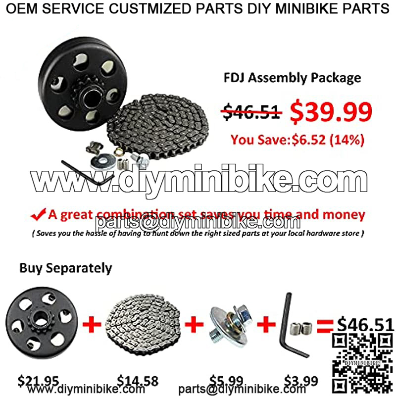 ??COMPLETE SET??Package Includes 1 x 3/4 12 Teeth Clutch, 1 x 5 feet #35 Chain, 2 x Chain Connecting Links, 1 x Clutch Bolt and Washer Kit, 1 x Screws Set, 1 x Allen Wrench. Saves You the Hassle of Having to Hunt Down All the Right Parts at Your Local Hardware Store.