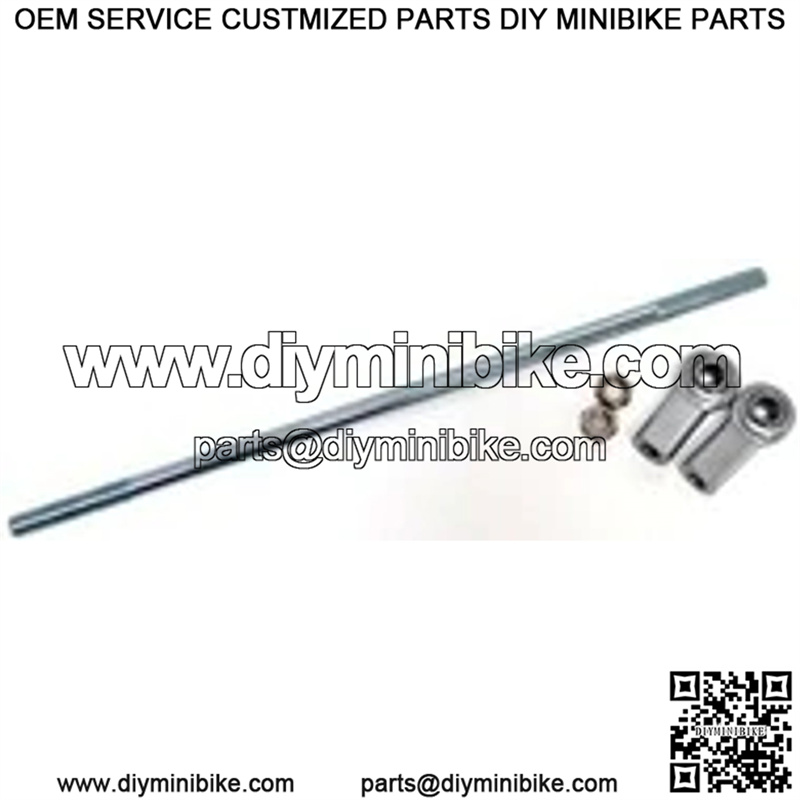 Solid tie rod kit, 3/8-24 x 13″ long. Each kit includes 1 solid tie rod, 2 aircraft rod end bearings, 2 jam nuts. The tie rod itself is 13″ long. Adjustable & trimmable. Extra-long threads. Plated steel.