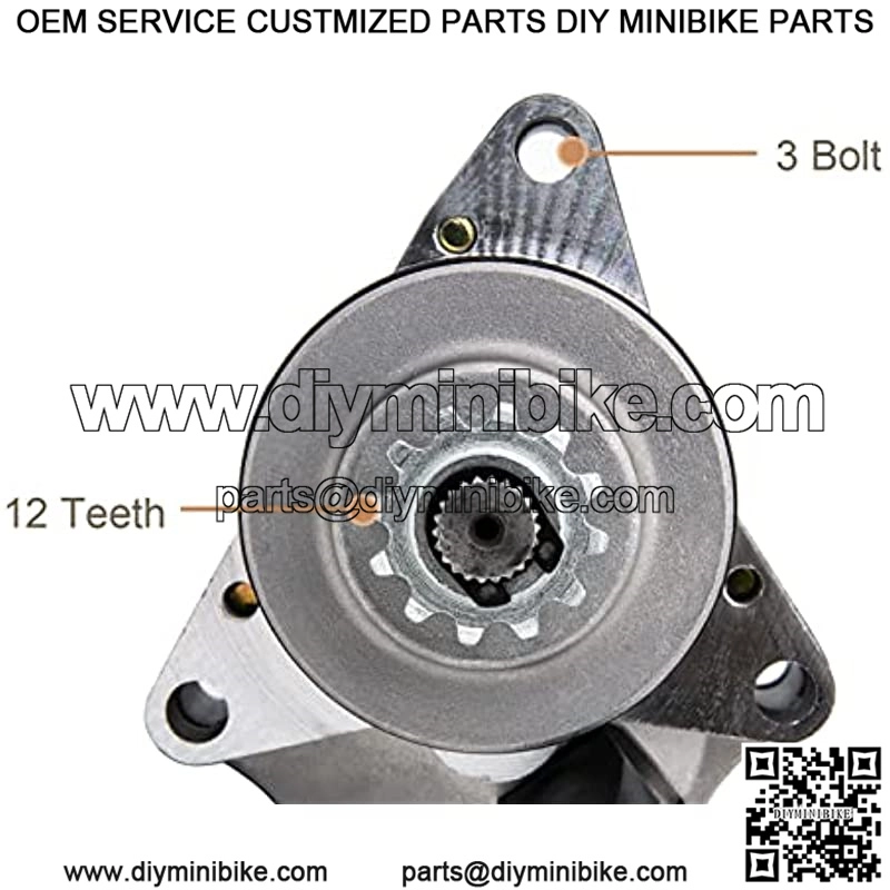 Starter Motor Details Bolt Hole A Spacing: 2.85 inch ; Bolt Hole B Spacing: 3.16 inch , 12-Teeth; Clockwise; 3 Bolt. Manual measurement allows 1-3mm error, please confirm your model carefully before purchasing.