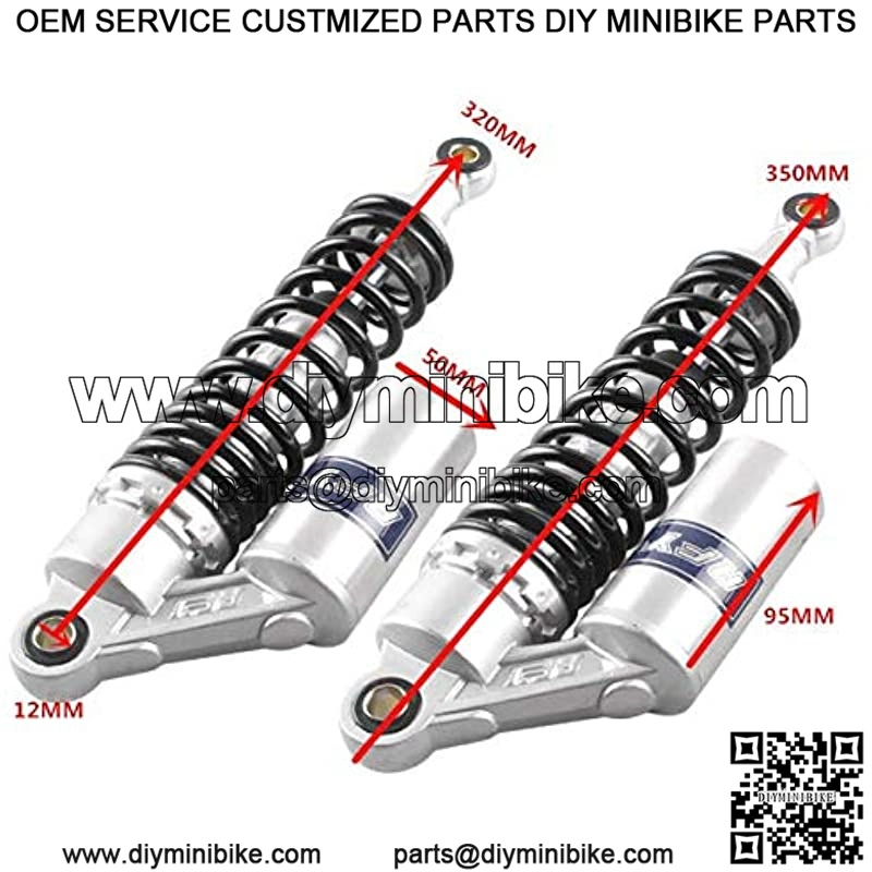 320mm A Pair Motorcycle Air Shock Absorbers Universal Fit For Suzuki Kawasaki ATV Go Kart Quad Dirt Sport Bikes (Silver Black)