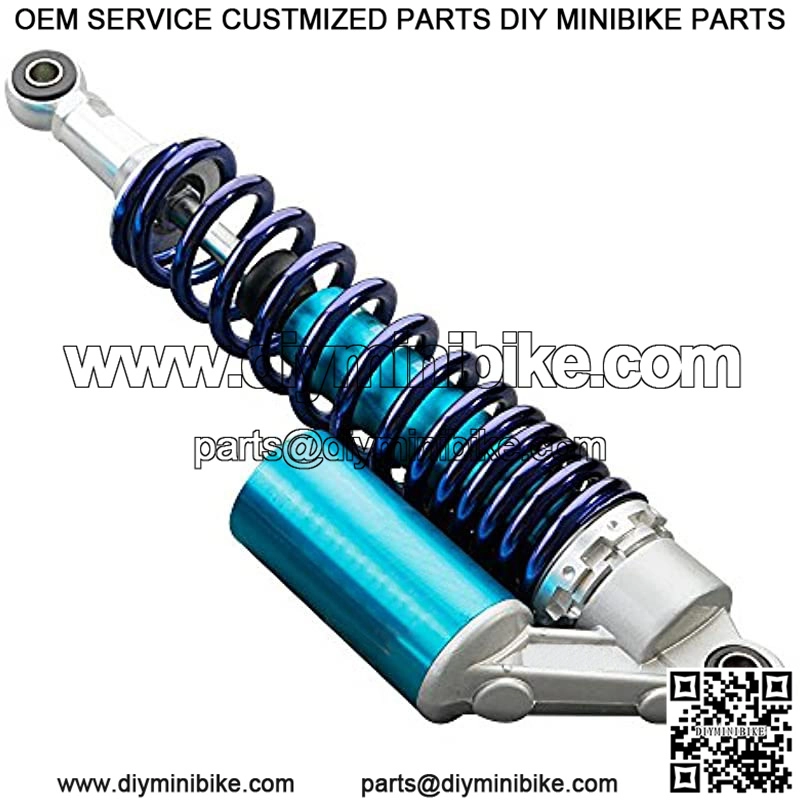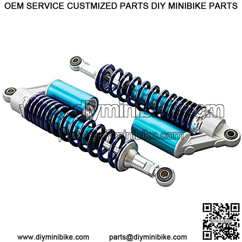 A Pair of Round Hole 375mm Aluminum and solid steel motorcycle shock absorbersUniversal for Honda/Yamaha/Suzuki/Kawasaki, the diameter of the round hole at the bottom is 12mm, and the length between holes to hole is 375mm(14.75″). Please check the size details and make sure it will fit your bike before purchase.Absorb shock promptly in the clumpiest road to improve security and make you feel more comfortableInstallation type: Eye to Eye. Best choice for replacement, style upgrading or bike modification.Motorcycle shock absorber universal fit for most vehicles. Package included: One Pair Shock Absorber, 2 x Wrench, 2 x BushingColor:375mm BlueThis pair of 375mm Motorcycle Shock Absorber is Universal for most 150cc~750cc street bikes, Karting(Go kart), Scooters and Moped Quad (ATV) with shocks of 375mm Length of Eye to Eye Core. Great choice for replacement, style upgrading and bike modification. (Please kindly check the dimension below before placing order.) Item Specific: Condition: Bra