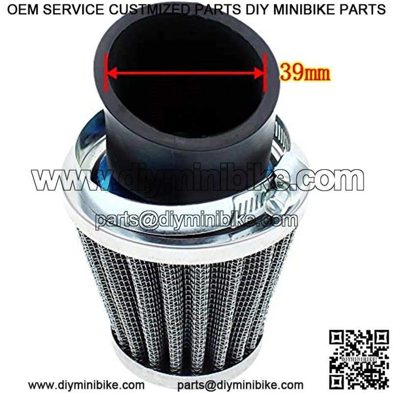 For most Off-road motorcycle, atv, quad, scooter, go kart, moped, pit bike, dirt bike, racing bike or super bike. For small to medium mid-sized engines 50cc – 90cc, 110cc, 125cc, 150cc, 200cc 2-strokes or 4-strokes engines, GY6 engines. Fits most carburetors (PZ22, PZ25, PZ26, PZ27 etc) requiring a 39mm (1.5in) inside diameter opening.