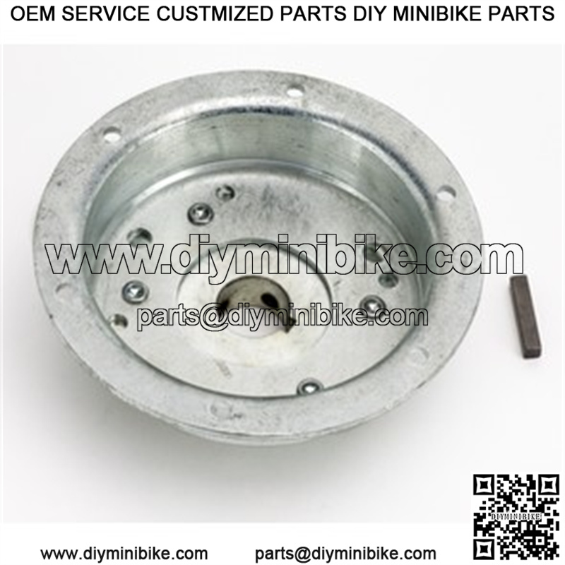 This flanged drum & hub kit features the Azusa mini-hub, factory riveted to a 4-1/2″ drum.