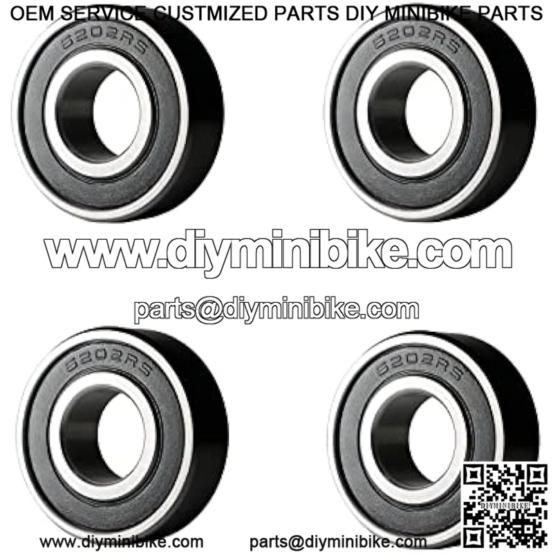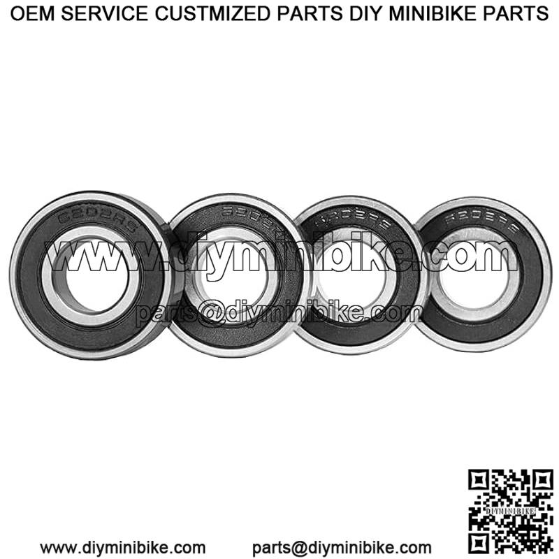 4 Racing Wheel Bearing w/ Grease for Coleman BT200X CT200U Trail CT200UEX, Baja Warrior 196CC MB165 MB200 Mini Bike, Front & Rear Wheels Bearings Replacement Parts, 6202RS (Pack of 4)