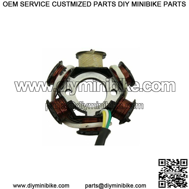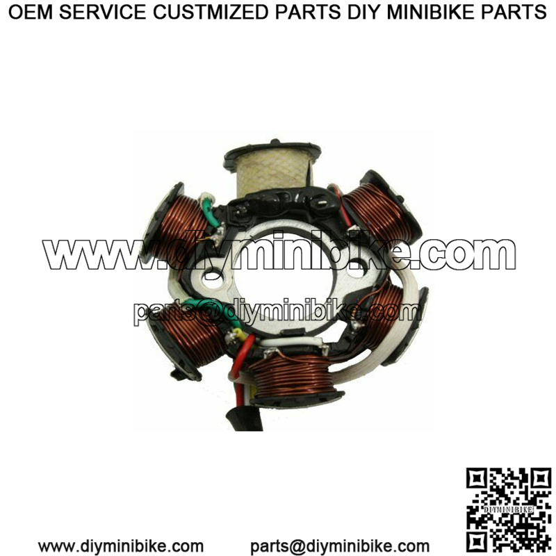 4-stroke stator assembly for Honda style 50cc-125cc horizontal motors commonly found on dirtbikes, ATVs, mini choppers and pocket bikes. Has Male Connection.