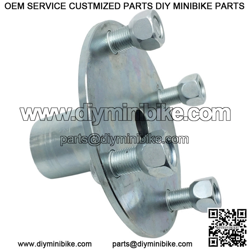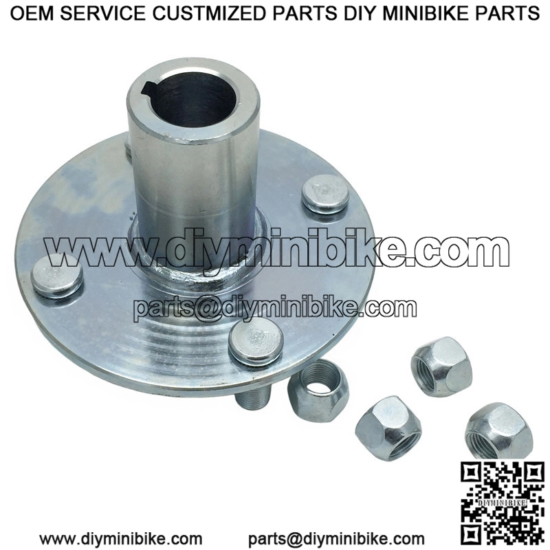 The 4″ x 4″ go-kart axle hub is most commonly found on go-karts using 8″ wheels. Although these hubs are incompatible with Yerf-Dog ‘karts, these are compatible with many quads, ATVs, and trikes that use this same hub. The hub features four lug nuts, and the hubs are 2-3/4″ long. The inner bore is milled for a 1/4″ axle key.
