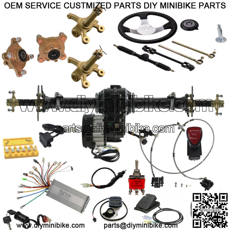 Voltage(V): 48VOutput Power:1000WCommutation: BrushlessSpeed(RPM): 4800rpmRated current:18-35AGear Ratio: 9.5:1 Torque: 2.62NmHigh Speed : 20mph / Medium Speed : 16mph / Low Speed: 10mph 40″ Differential Rear Axle Drive Shaft kit16 teeth Axle Length: 40 inch Comes with pair axlesPackage Include:2x Rear differential Axles assembly1x 1000w 48v brushless motor1x 48v brushless motor1x rear brake assembly1x brushless wiring harness1x ignition key switch1x 3 speed switch1x throttle pedal 1x brake switch1x charging port 1x terminal block1x forward reverse switch1x power indicator1x brake caliper 1x 25ah air switch1x front steering wheel1x tie rod rack assembly2x knuckle spindle hubs2x 4 stud wheel hubs