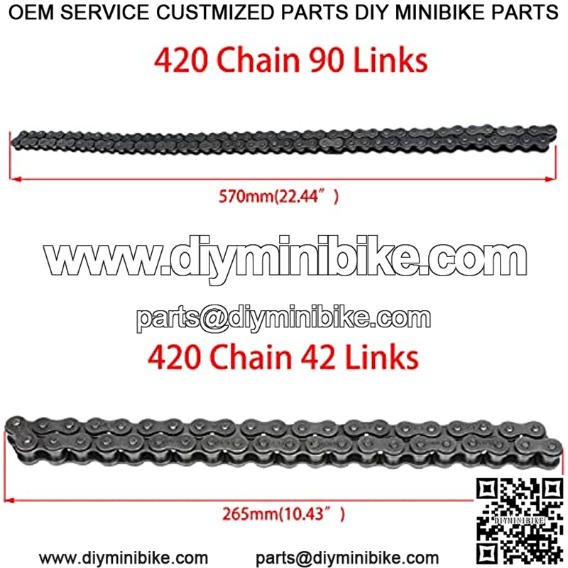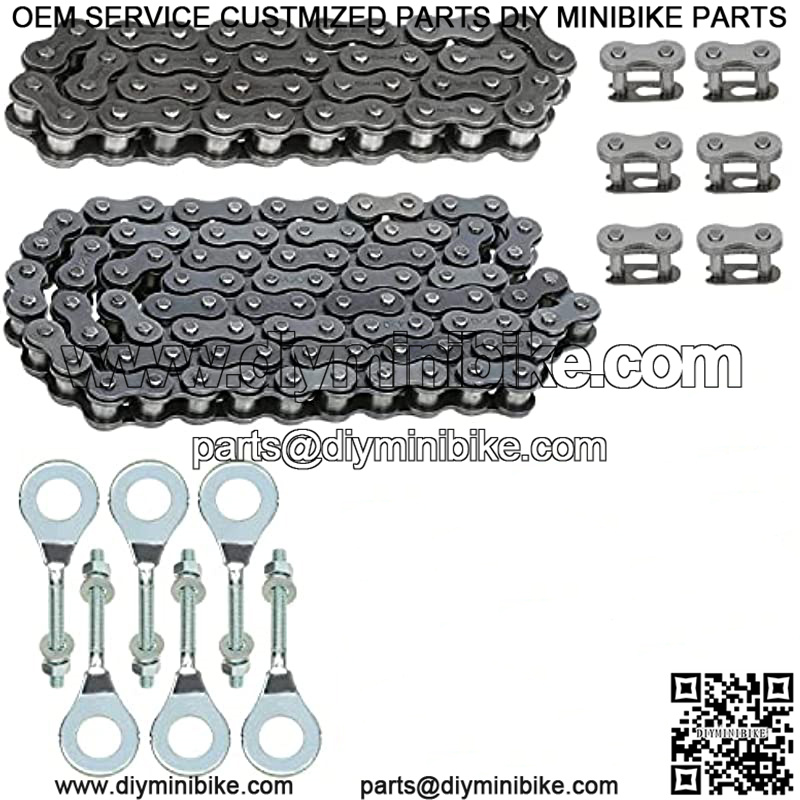 Package Contents: 1 ?? 420 Jackshaft Chain 42 Links, 1 ?? 420 Rear Chain 90 Links, 6 ?? Chain Axle Adjuster, 6 ?? 420 Chain Master Link,