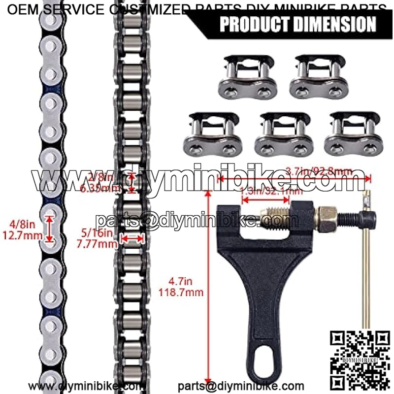 COST-EFFECTIVE PACKAGE: The package includes 1 pcs 420 132-Link Standard Roller Chain, 1 pcs chain breaker and 5 pcs 420 Chain Connector Link for free as gift for you.