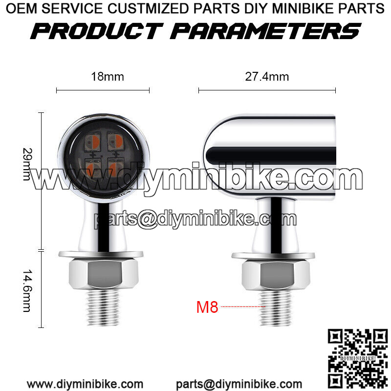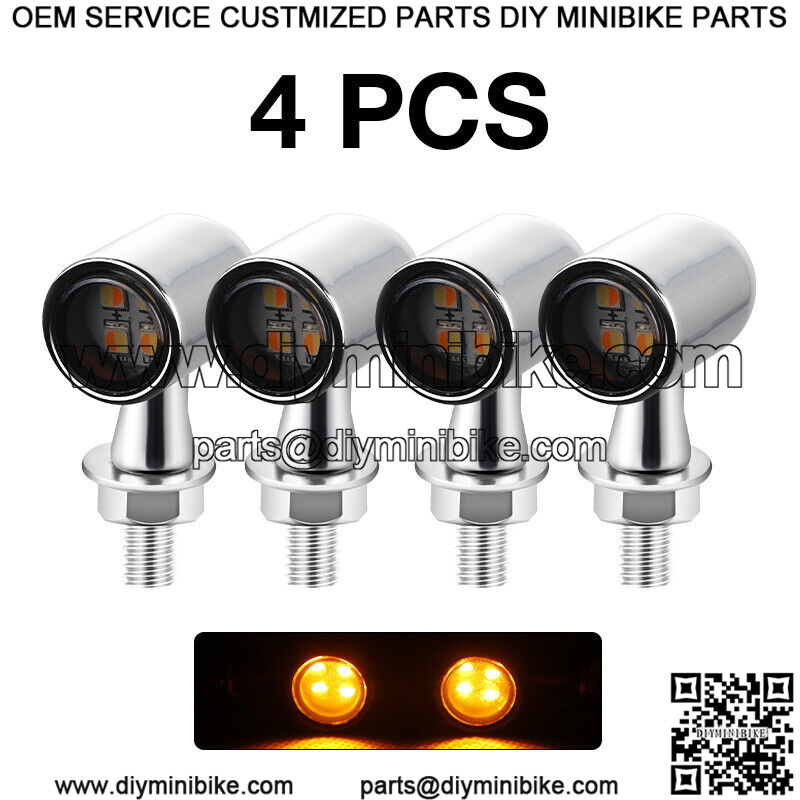 4x Chrome LED Motorcycle Mini Turn Signal Light Amber Indicator Blinker Lamp