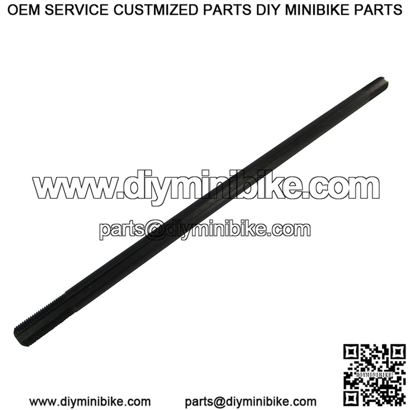 16″ long with 5/8-18 x 2″ threads both ends, 3/16″ keyway (full length of axle) black oxide plate.