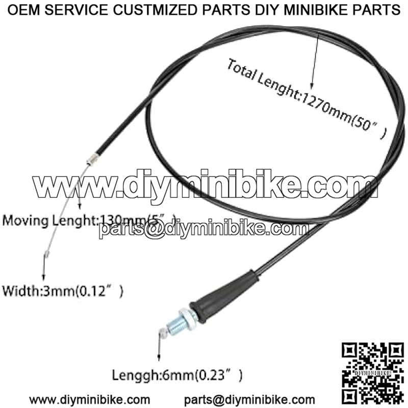 50 inch Throttle Cable for Predator 196cc 212cc 6.5hp Coleman CT200U CT200U-EX BT200X Baja Warrior MB200 79cc 97cc 2.5hp CT100U CC100X DoodleBug DB30 Motovox MBX10 Monster Moto MM-B80 Mini Bike
