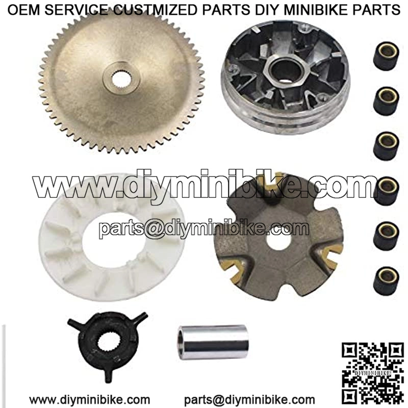 Variator Drive Wheel Assembly for GY6 QMB139 50cc 4-stroke engines Kit Includes: Variator Pulley (Retainer), 7gr Rollers, Drive Face Spacer, Cooling Fan, Kick starter ratchet gear, Drive Face Gear, Variator Back Plate with sliders Fits many 50cc 4- stroke engines, Jonway VIP Lance Kymco Baccio TaoTao Tank Peace gas scooters Fit Most brand models, like AVANTI, BAJA, BAOTIAN, BMS, BMX, DIAMO, EAGLE, FUSHIN, ICE BEAR,JACKEL, MOTO, JM STAR, JONWAY, KAZUMA, KEEWAY, KYMCO, MOTOFINO,PANTHER, REDCAT, ROKETA, SCHWINN, STRADA, SUNL, TANK, TAO TAO,TERMINATOR, VENTO, VERUCCI, WILDFIRE, X-TREME, YAMATI, AND MANY MORE Roller weight: 8.5 gram, Advanced material solid structure high strength and long life span