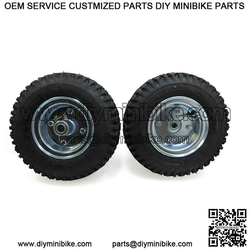 Kit includes front and rear wheel with a 60 tooth sprocket for #35 chain. The tires are 4.10/3.50-6 studded tread. New high speed bearings are included!