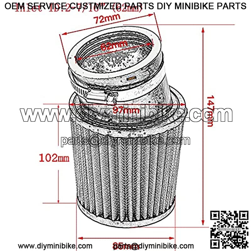 Note: This air filter require significant richer jetting compared to the stock jet. Typically a #92 for GX200s, #95 for 212 Predators, and #98 for 6.5 Ru*ing Carbs (6.5 Chinese) will be needed