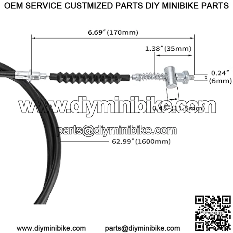 63 inch Rear Drum Brake Cable Line with Belts For 196cc 6.5 Hp Baja Heat Warrior Hensim Massimo MB165 MB200 Coleman Trail CT200U CT200U-EX BT200X Yerf-Dog Mini Bike Motorsports ATV Scooter Dirt Bike