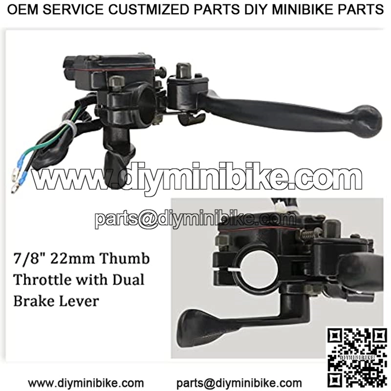 7/8” 22mm Thumb Throttle with dual brake lever for 50cc 90cc 110cc 150cc 250cc ATV parts. Thumb throttle with speed control governor, brake lever with parking brake.
