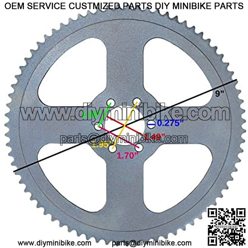 Specifications: Chain Size: #35 Chain Sprocket Teeth: 75 Tooth Mounting Hole Spacing (center to center): 2″ Mounting Hole Diameter (x6): 1/4″ Center Hole Diameter: 1-1/2″