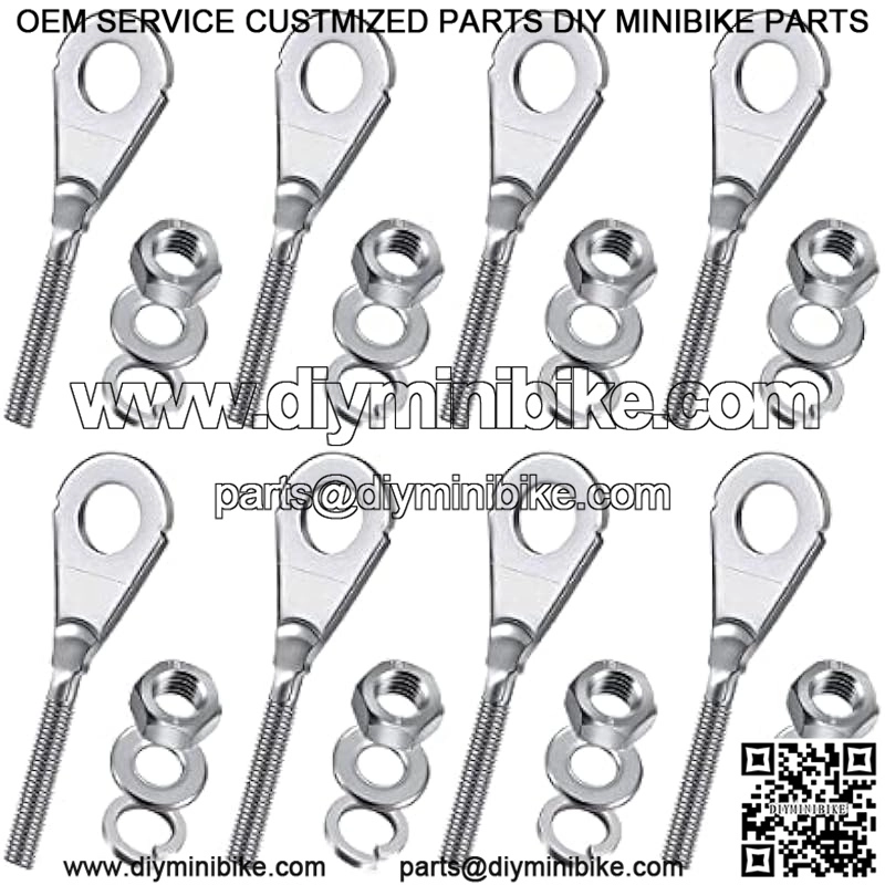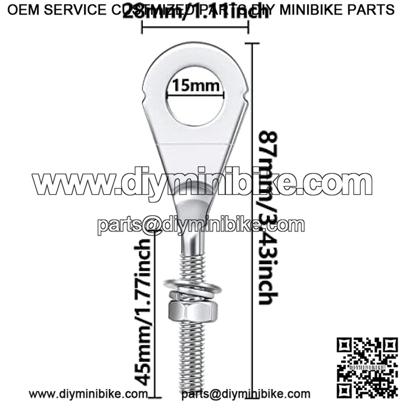 Budget-friendly??Package Includes:8Pcs Chain Tensioner Adjuster.Overall Length: 87 mm/ 3.43 inch, Bolt Diameter(Axle hole): 15 mm / 0.59 inch, Screw Thread Diameter: 6mm / 0.24 inch.