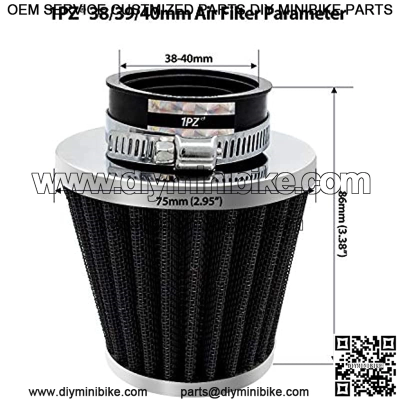 AR2-F01 38/39/40mm Air Filter Intake Cleaner Replacement for 50cc 90cc 110cc 125cc 150cc 200cc GY6 Motorcycle ATV Scooter Quad Go Kart Moped Pit Dirt Racing Bike Yamaha Suzuki Baja TaoTao