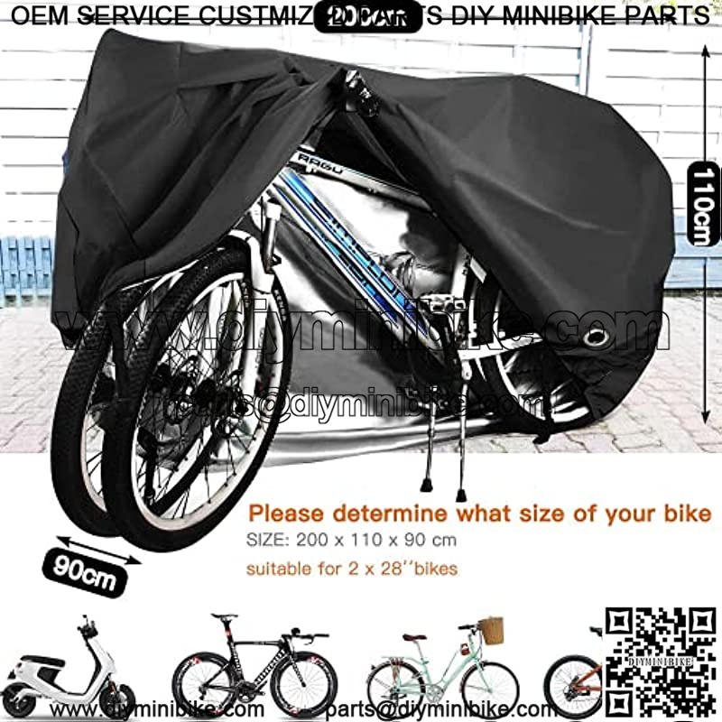 ??Bike Protector Cover?? Its large enough to cover 2 bicycles up to 28??. It also covers most size road bikes, mountain bikes, mini exercise bike, electric bikes, scooter, spin bike, lady??s shopper, beach cruisers, pendleton bike and provide coverage from top to bottom including wheel, pedals, bicycle bell.