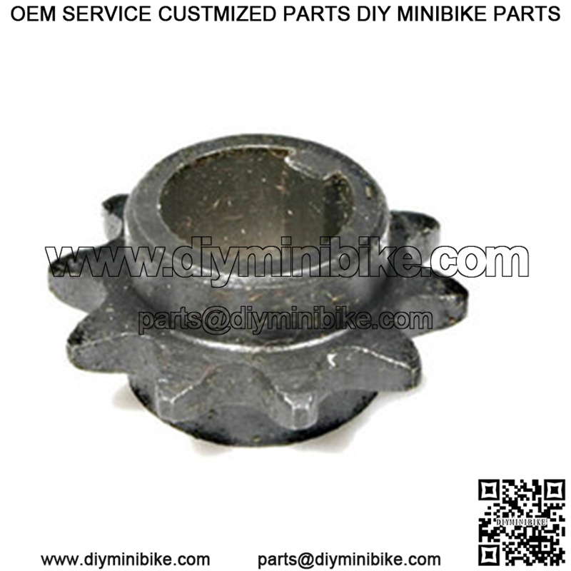 “C” type sprocket for #35 chain. 10 teeth. Has a hub on both sides. 5/8″ bore. No set screw. Has a key as part of the hub rather than a keyway. No key is needed. Has a 5/16-18 set screw. Precision hobbed teeth. Case-hardened steel.
