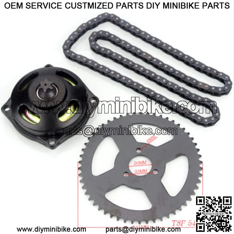 100% nuevo!Modelo: T8FN??mero de diente: 54 dientesHecho de materiales de alta calidad disponibles.Los enlaces se pueden eliminar para adaptarse a pr??cticamente cualquier aplicaci??n.Ajustar para: 47cc 49cc 2 Stroke Minimoto Pocket Bike ATV Quad 4 Wheeler Go Kart Scooter.Especificaci??n:Material: aleaci??n de aluminio.Di??metro: aprox. 141mm / 5.55 pulgadasDi??metro interior: aprox. 26mm / 1.02 pulgadasEl paquete incluye:Cadena de 1 piezaCaja de engranajes de 1 piezaPESPA A TRASERA DE 1 PIEZANota:Por favor, la desviaci??n de medici??n de 0.5-1 pulgadas debido a la medici??n manual (1 cm = 0.39 pulgadas)Debido al monitor y la luz s, los colores reales del art??culo pueden ser ligeramente s del colorMostrado en las fotos.Embrague de la caja de engranajes T8F con la rueda dentada de la cadena trasera 54TCadena con caja de engranaje rueda dentada traseraCaja de engranajes de reducci??n de transmisi??n T8F