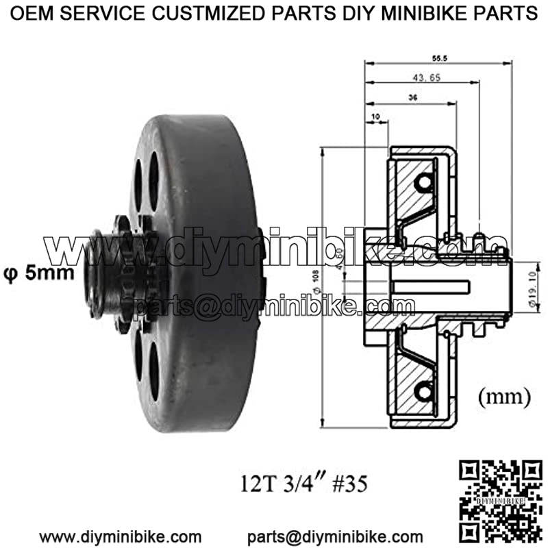 Centrifugal Clutch 3/4″ Bore 12 Tooth #35 Chain Compatible For Go Karts Clutch Mini Bike Replace Parts