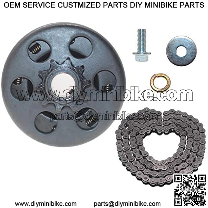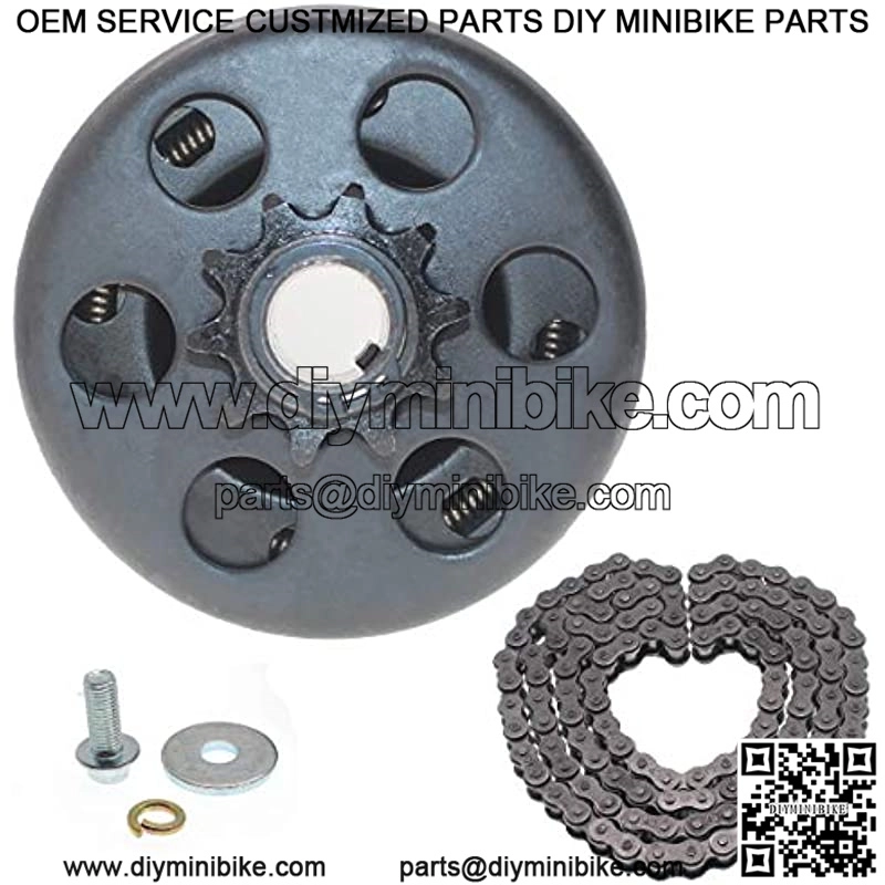 Centrifugal Clutch 3/4″ Bore 10 tooth Compatible whit 212cc 196CC 2hp-7hp Engines. Centrifugal Clutch 3/4″ Bore 10 tooth Compatible whit GC160, GC190, GX120, GX140, GX160, GX200 2hp-7hp Engines. Centrifugal Clutch 3/4″ Bore 10 tooth Compatible whit B&S Tecumseh 2-6.5 HP and with 3/4?? with 3/4″ Bar Shaft and 3/16″ Key Way engines. Centrifugal Clutch 3/4″ Bore 10 tooth Compatible whit Single Wheel Belt Direct Drive Karts with Tires No Larger Than 15″ Tall. Go Kart Clutch kit?? includes screws and chain .