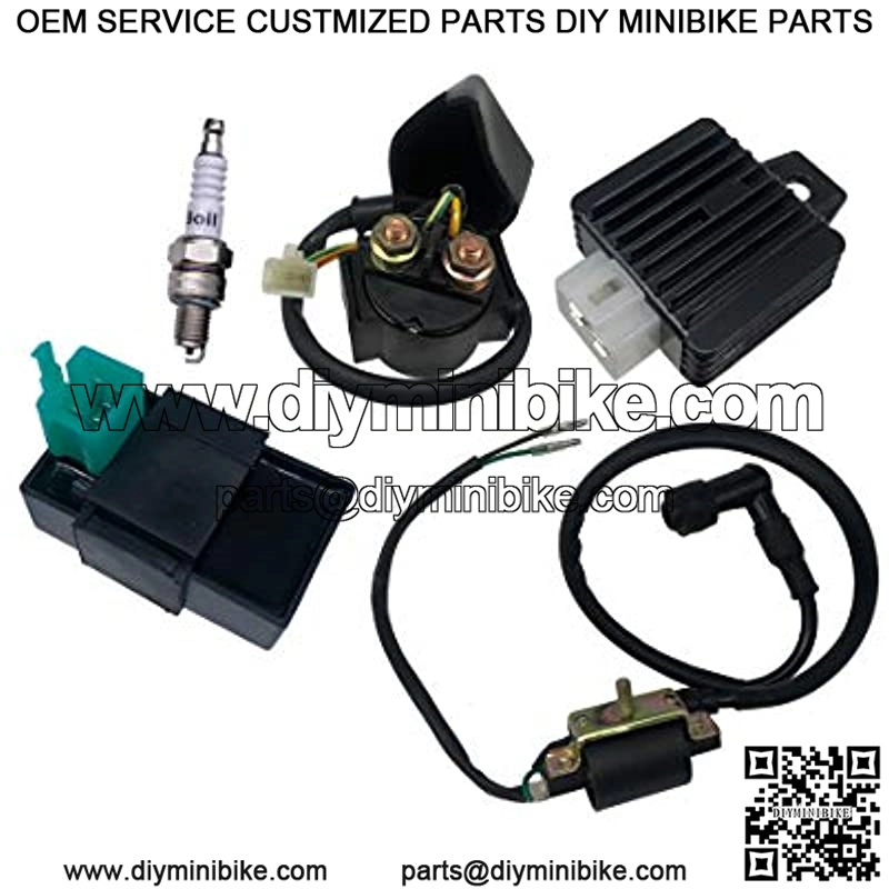 CG Relay CDI Ignition Coil 5 Pin Regulator Rectifier Spark plug for 49cc 50cc 70cc 90cc 110cc 125cc ATV Chinese Go kart Dirt bike for TaoTao for SUNL for Roketa for Kymco for Jonway