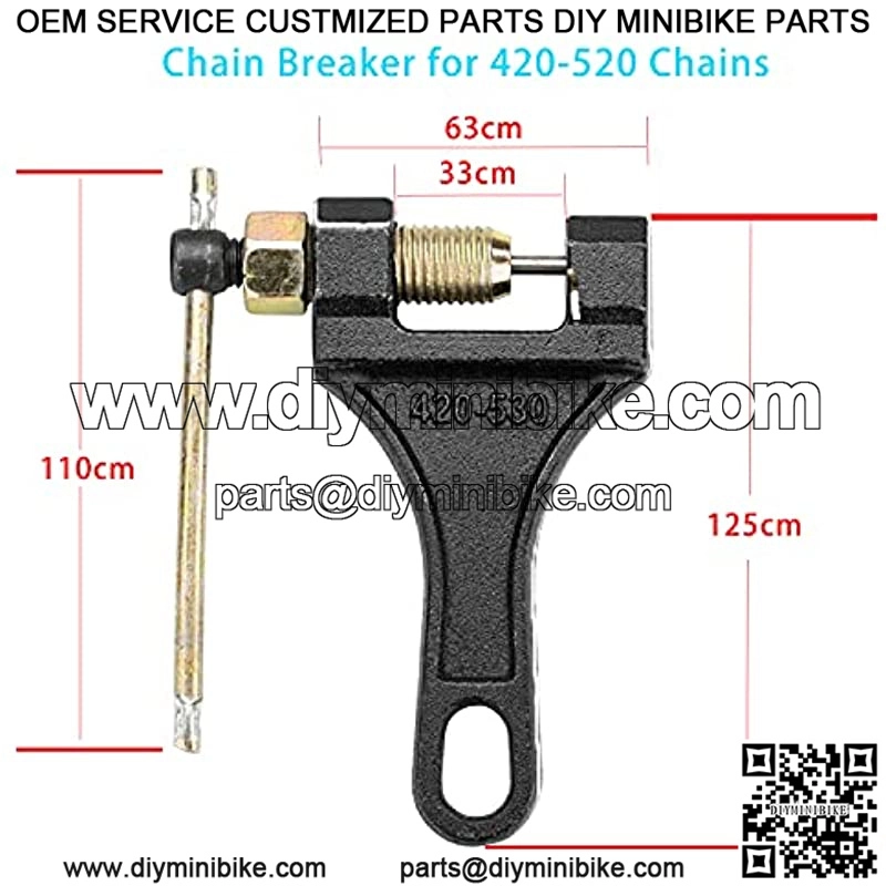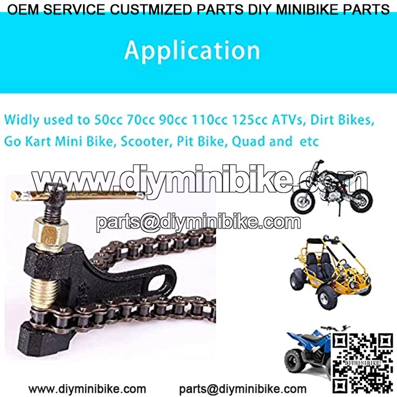 Application: This chain breaker is fit for 420 428 520 525 528 530 roller chains.. It is widely used to adjust the length of a roller chain for 50cc, 70cc, 90cc, 110cc, 125cc ATVs and dirt bikes, GO Kart, Mini bike, Scooter, Pit Bike, Quad and etc