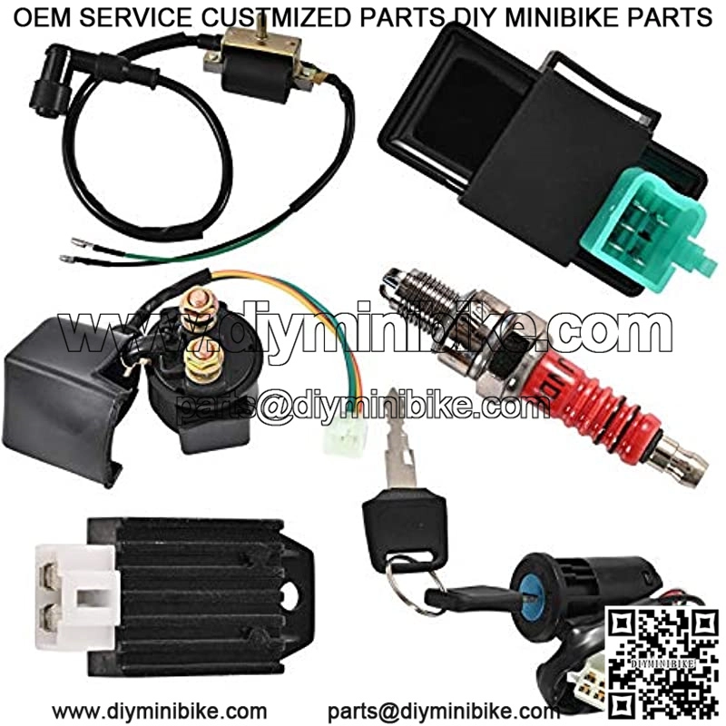Package Include: ATV Wire harness, CDI box(5Pin AC), Solenoid Relay, Rectifier, Ignition Switch (2 keys, waterproof), Upgraded Multi-functional ATV Switch, AC Stator (Magneto Generator), Ignition Coil with lead and, Spark plug.