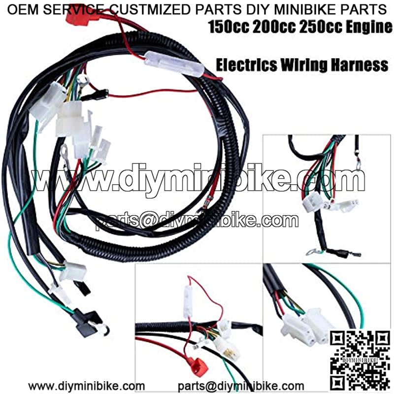 Complete Electric Start Engine Wiring Harness Loom Compatible with 150cc 200cc 250cc Pit Quad Dirt Bike ATV Dune Buggy.