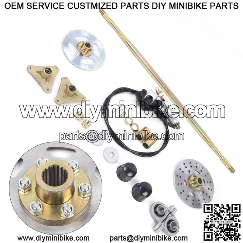 Rear Axle Kit:Length: 740mmDisc: 160mm*4mmSprocket: T8F 58T(No chain)This is a complete rear axle kits for go kartRear Brake Caliper Assembly:With master cylinder and caliperBrake hose length: 61 inch (1550mm)This rear brake assembly should fit most chinese made pit bikes. Fits (For the reference):Perfect for DIY gokart projects or rebuildsFit for quad ATV buggy go kartFit many 50cc 70cc 90cc atv quads, go karts such as atomik , motowork, DHZ , LEI etcPackage includes:?? Rear Axle Kit + brake assembly + Pair of pillow blocks(No chain)